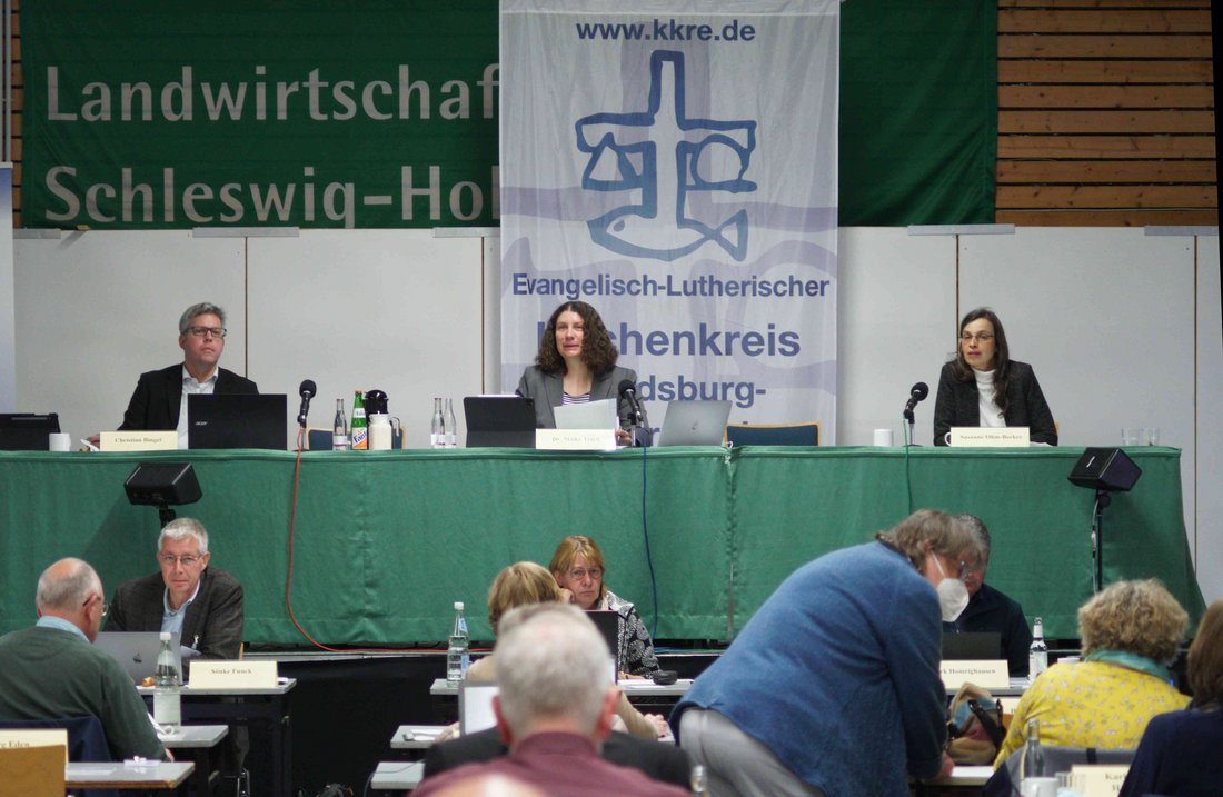 Rendsburg/Eckernförde - Die Synode des Kirchenkreises Rendsburg-Eckernförde hat Sonnabend zukunftsweisende Themen behandelt. In der Halle der Landwirtschaftskammer wird unter anderem über den Transformationsprozess informiert und über einen Antrag auf Änderung der Kirchenkreisgrenzen beraten. Klimaschutz stand am Nachmittag auf der Tagesordnung. Neben thematischen Workshops wurde die Einrichtung eines Klimaschutzbüros beschlossen. Zu den Themen Klimabüro und Kirchenkreisgrenzen finden Sie eigene Artikel auf unserer Website (Links unter diesem Text).